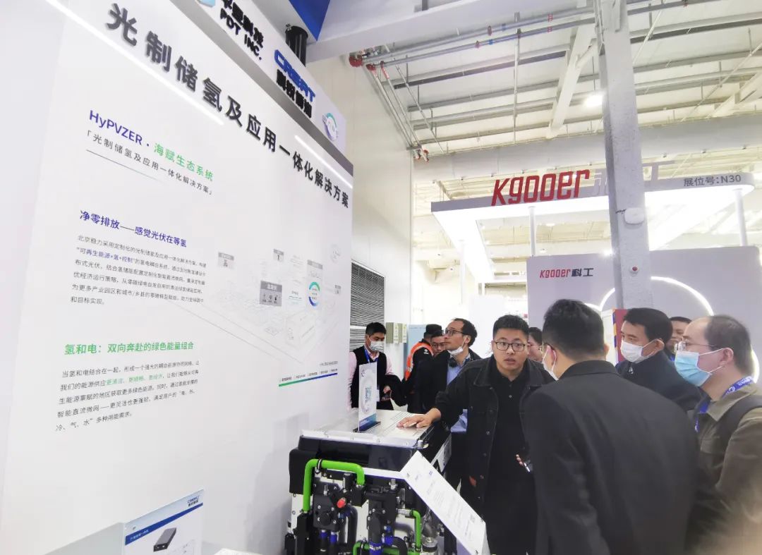在ESIE2023展會(huì)現場,通(tōng)過觸屏式數字沙盤的可視化三維演示,現場觀衆詳細了解北(běi)京穩力推出的光(guāng)制儲氫及應用一(yī)體化解決方案。據悉,該解決方案通(tōng)過構建"可再生(shēng)能(néng)源+氫+控制"的氫電(diàn)耦合系統,探索綠色電(diàn)力與綠氫儲能(néng)相(xiàng)結合的能(néng)源應用新模式,采用氫儲能(néng)的方式解決新能(néng)源發電(diàn)波動問題,自(zì)主研發的“分布式綜合能(néng)源系統”,單模塊額定功率500kW,支持定制、多(duō)模塊擴展、多(duō)能(néng)源耦合,氫電(diàn)轉換效率高(gāo),熱電(diàn)聯産效率>90%,儲存的氫氣可用于氫能(néng)車輛加氫,也可通(tōng)過燃料電(diàn)池系統實現冷熱電(diàn)三聯供,滿足用戶的“電(diàn)、熱、冷、氣、水(shuǐ)”多(duō)種用能(néng)需求。