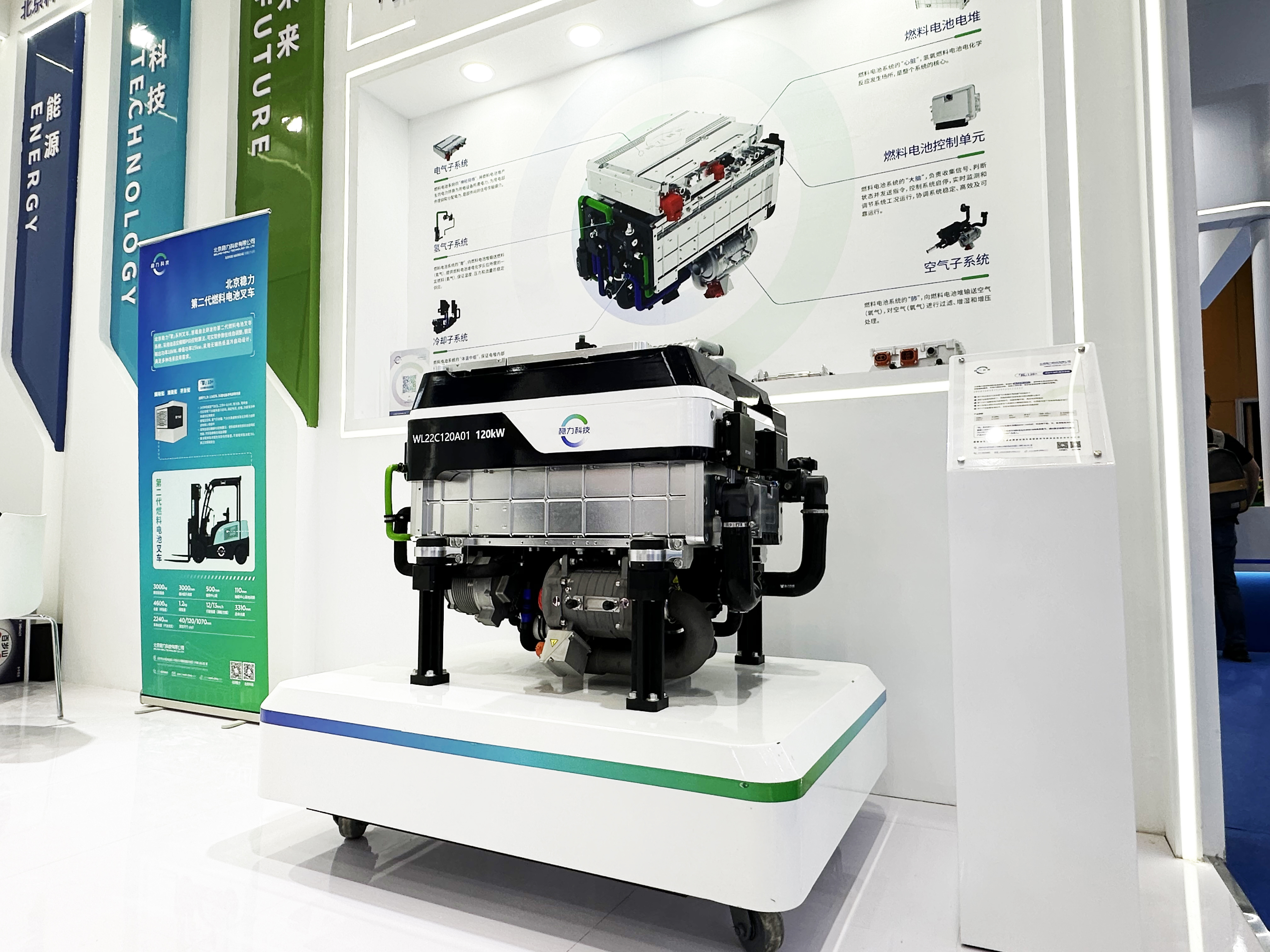在C2館展區現場,北(běi)京穩力集中展出了新一(yī)代商用車燃料電(diàn)池系統「拓」120+、無油離心空壓機(jī)「岚」280、氫能(néng)源解決方案沙盤等多(duō)款高(gāo)顔值硬核産品。其中,面向重卡幹線運輸場景開(kāi)發的120kW燃料電(diàn)池系統,以其高(gāo)規格的系統研發與高(gāo)顔值的造型外觀高(gāo)光(guāng)頻現,在一(yī)衆展品中吸睛不斷,受到(dào)衆多(duō)參展嘉賓的關注和好評。